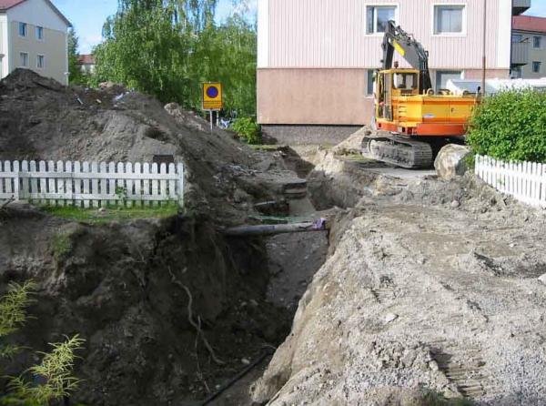 Ända bort till hyreshuset på andra sidan gatan grävde de upp. Hela ledningen behövde bytas ut.