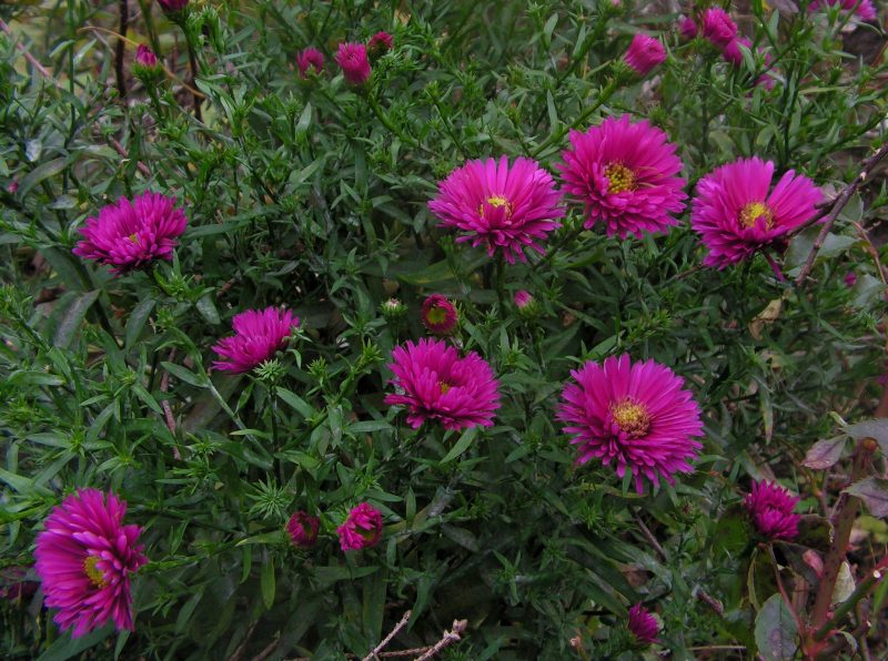 Oktoberaster, men den kom nog igång tidigt i oktober. Färgen är mörkt vinröd, eller rödlila. Bilden blev lite missvisande. Ca halvmetern hög.