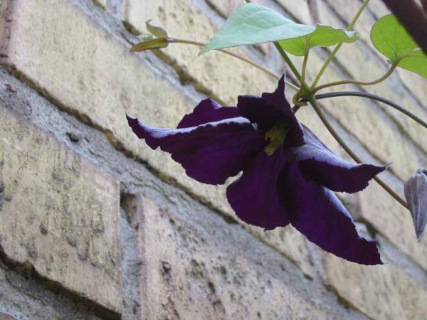Storblommiga klematisen Viola, dramatisk i motljus den 6.8 -05.