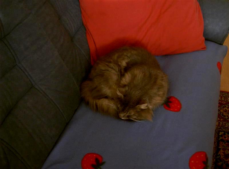 Detta är Murvels plats från höst till vår,men han är ute i skogen och trädgården med för kortare stunder.