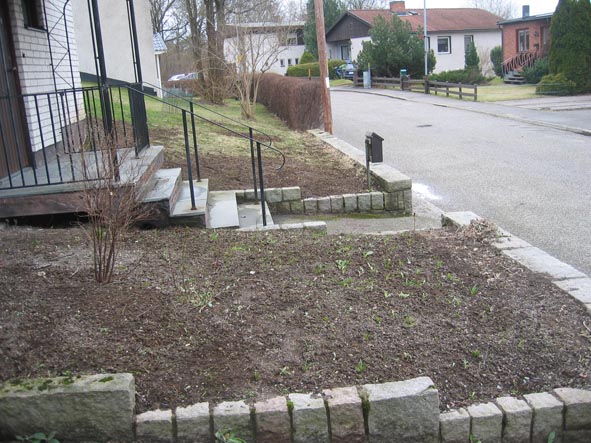 | Denna bild och nästa ska jag ha och mysrysa över om några år då FÖRHOPPNINGSVIS allt kommer se annorlunda ut. Eller om några år är väl att ta i..redan i sommar kommer det ju se annorlunda ut. Men detta är bara andra våren i huset så det är MÅNGA planer för framtiden när det gäller trädgården. |