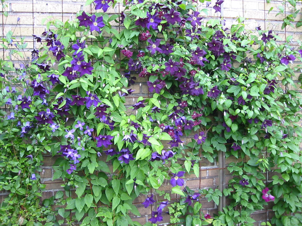 Klematis på spaljé i pallkragerabatt, 31/8 -07