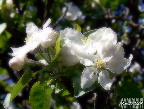 Vårt ena äppelträd har slagit ut, fotograferat 070502