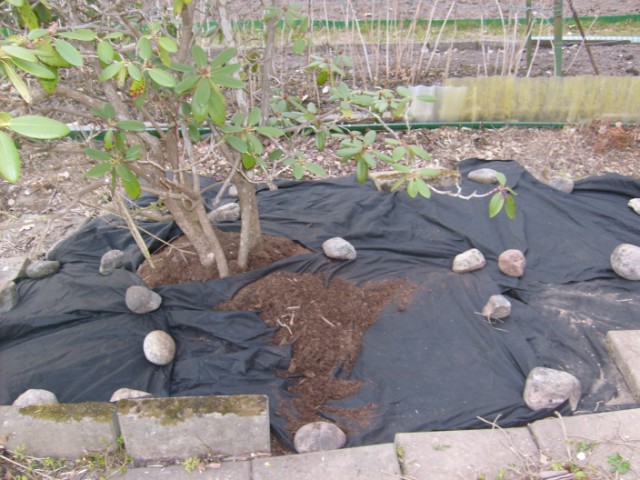 Kirskålsrabatten är nu täckt med duk, det får bli en ev murad kant och en upphöjd rabatt senare i sommar.