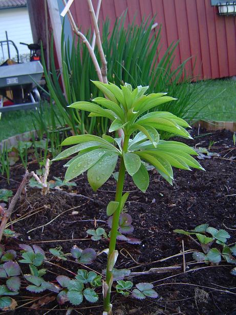 krollilja med magnolia, vit gröslök / luftlök i bakgrunden