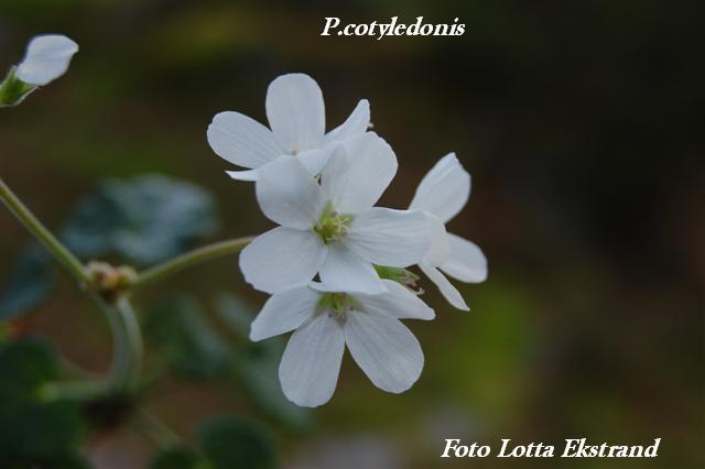 P. cotyledonis Vild pelargon Stamsuckulent tillhör gruppen Isopetalum Synonym: "Old man lives for ever" Äldre exemplar liknar bonsaiträd Den växer vilt bara på ön St. Helena