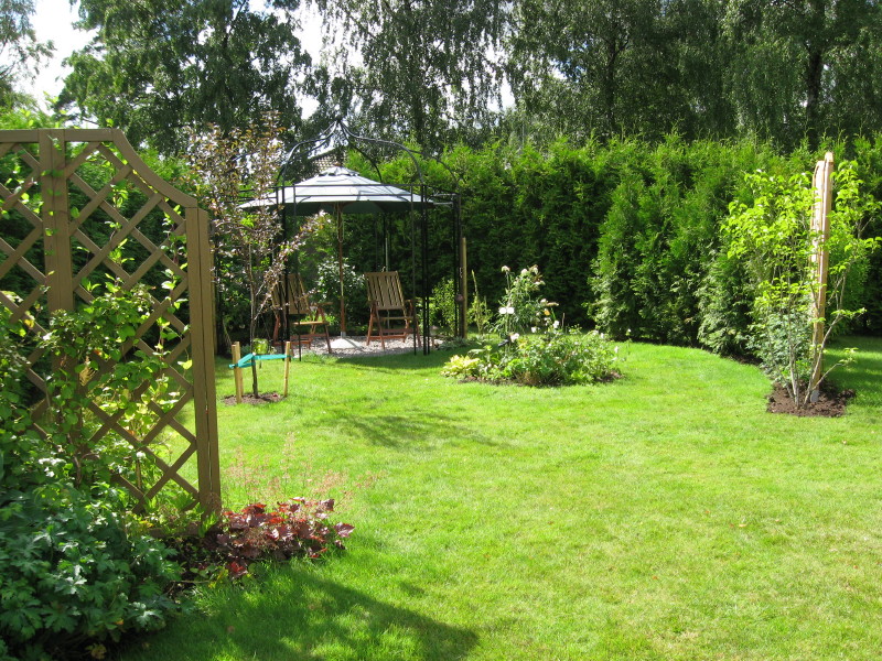 Vi utökade den lilla häcknsutten med två spaljéer och flyttade dit en syren.