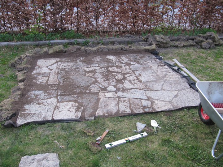 Efter mycker pusslade blev golvet i ölandssten klart.