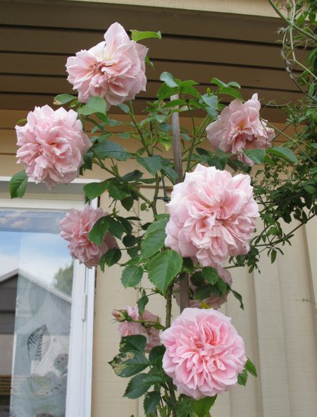 | Irma Balsgårdsros, den snyggaste i gruppen, förra sommaren fick jag klippa ner den hårt men den hämtar sig, tuff, fryser aldrig ner. juli 2021 |