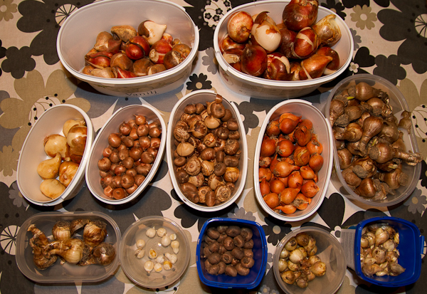 Mina kom idag, oj, oj, oj...Hur har jag vågat köpa så många tulpanlökar?Jag ser för mig hur sorkarna redan spanat in tulpanlådan och sitter dreglande i sina gångar... Må det bli en kall vinter, med ordentlig tjäle innan snön faller...