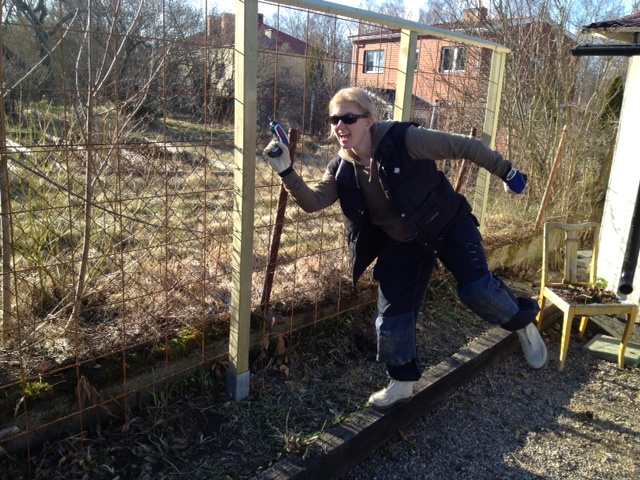 Jag har dålig erfarenhet av Humle. De växer obehindrat in i hela trädgården. Rötterna når flera meter ut i annan odling. Har man inte jobb, så får man med ett sådant buskage. Det finns Bokharabinda, som ocksp växer snabbt. Den kallas ibland arkitektens räddning, för den täcker över alla dessas misstag.Det finns ju även murgröna, vilken växer snabbt, och blir mycket tätt. Vad gäller armeringsnätet, så bör du välja ett som är riktigt stabilt, t.ex. ø10 mm och kanske 150 i ruta. Tungt och därmed dyrt, men det håller åtminstone. Det kanske bara finns hos järnhandlare. Måtten brukar vara ca 5x2,4 m. Eventuellt så finns det skadade sådana som du kan få billigt. Man brukar lasta av med gaffeltruck, och då sliter man av någon tråd här och där. Försök att inte gå under ø8...när bladverket är utvecklat, så blir hela installationen ett ordentligt vindfång, och det blir inte kul om det välter i en halvstorm.