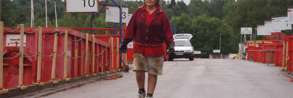 Jamen, varför lär sig inte kommunfolket! Titta på Hanneles bild. Exakt så ser det ut på alla återvinningsplatser, åtminstone i Göteborg. Det är så j***a trångt! Varför måste dom ha en så smal passage mellan de båda sidorna? Det räcker att ett ekipage med släp står lite illa till så kommer ingen förbi och det blir stopp med lång kö som resultat.