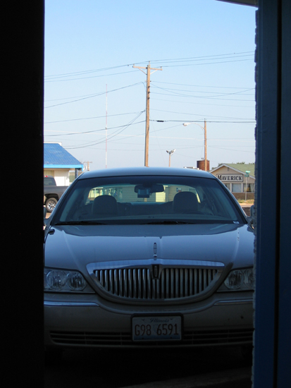 Vi åkte i en ny, fin och enorm Lincoln Town car.