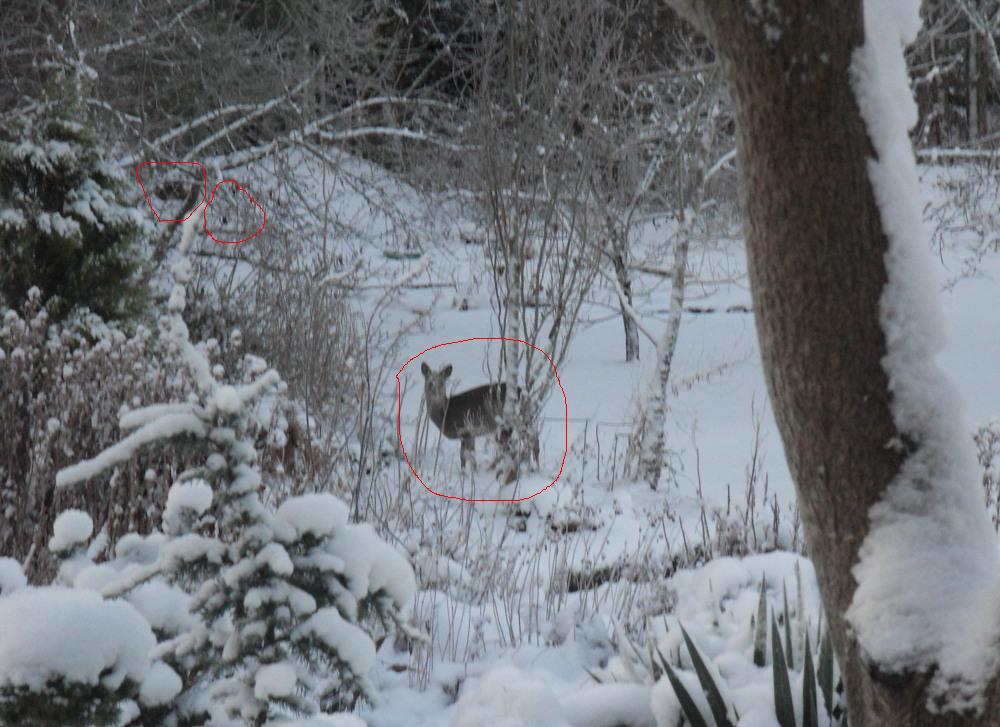Jo, det verkar som dom har det lite jobbigt just nu, rådjuren. Hos mig har dom krafsat fram gamla äpplen som låg kvar under äppelträdet sedan i höstas