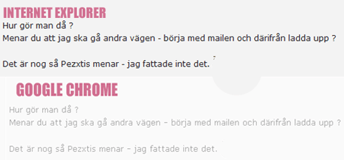 Det är en markant skillnad mellan texten i Explorer och texten i Chrome.