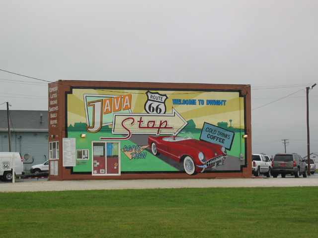 Det här var ett roligt drive-in cafe, 2 containers ovanpå varann. I Dwight, Illinois. Lite regn då o då första dagarna, men otroligt varmt och fuktigt. Tropisk känsla med fukten och ljudet av syrsor, grodor och vacker fågelsång.