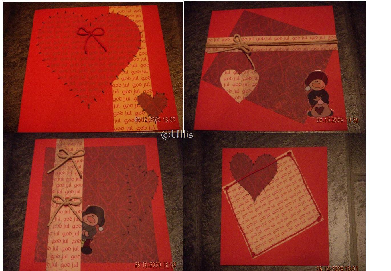 Jag har använt färdiga röda kort och kuvert (10 st 48 kr på Panduro) och sen köpt bla lösa ark med motiv (12 kr/st).