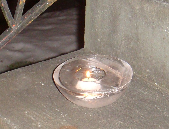 Det blev jättefint netaave! Måste få tipsa om den enkla varianten också. Ta en hink och fyll med vatten. Ställ ut en till två dygn beroende på hur kallt det är, då har överdelen och sidorna frusit. Stjälp ut, knacka bort den tunna bottnen och häll ut vattnet som inte frusit. Klart. Jag använder faktiskt gravljus i mina islyktor och snölyktor, om man släcker de till natten så räcker de många, många kvällar.