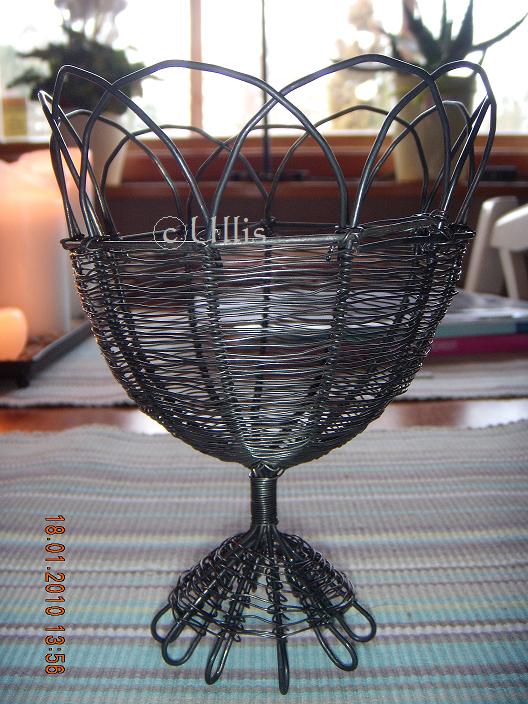 En till trådkorg som jag håller på med just nu. Lägre än den andra. Foto kommer på den när den blir klar.