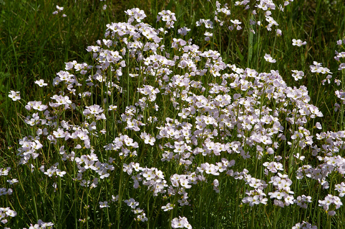 Det är ängsbräsma (Cardamine pratensis) eller "Marie potäter" som den också kallas i södra Bohuslän. Den är vanlig på fuktig mark och blommar för fullt nu.