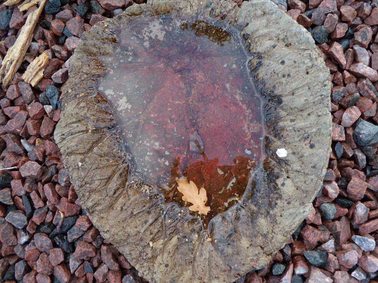 . Det där med att låta bladen sitta kvar tills de lossnar själv var smart tycker jag. Själv har jag alltid haft plastfolie mellan bladet och betongen/cementen för att det ska lossna. Ett av mina har blivit rött av sig själv efter minst fyra år utomhus