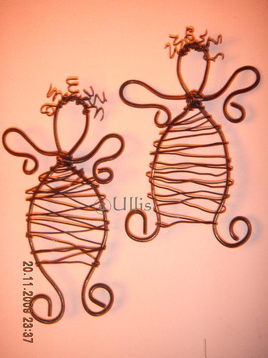 Här kommer några bilder på lite pyssel som jag hållt på med de senaste kvällarna. Material: Ståltråd i två tjocklekar, jutesnöre, pärlor och så lite fantasi och inspiration från nätet.