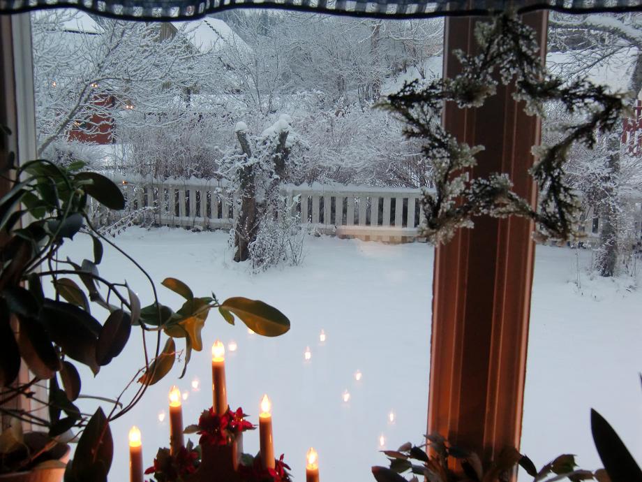 Mörkret kommer ca 16.00 nu när vi fått lite snö hä...