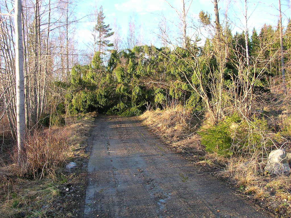 På morgonen var detta det första av 31st stora träd som blåst ner över vår väg: