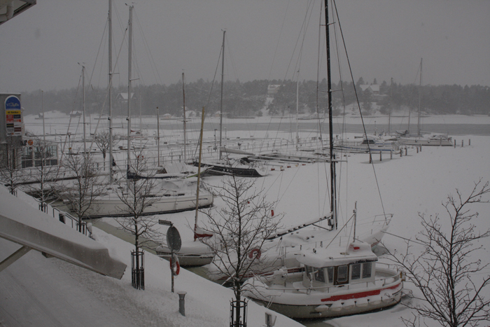 Här är ett par bilder som jag tog från kontoret idag. Det är inte ofta sundet är helt tillfruset.