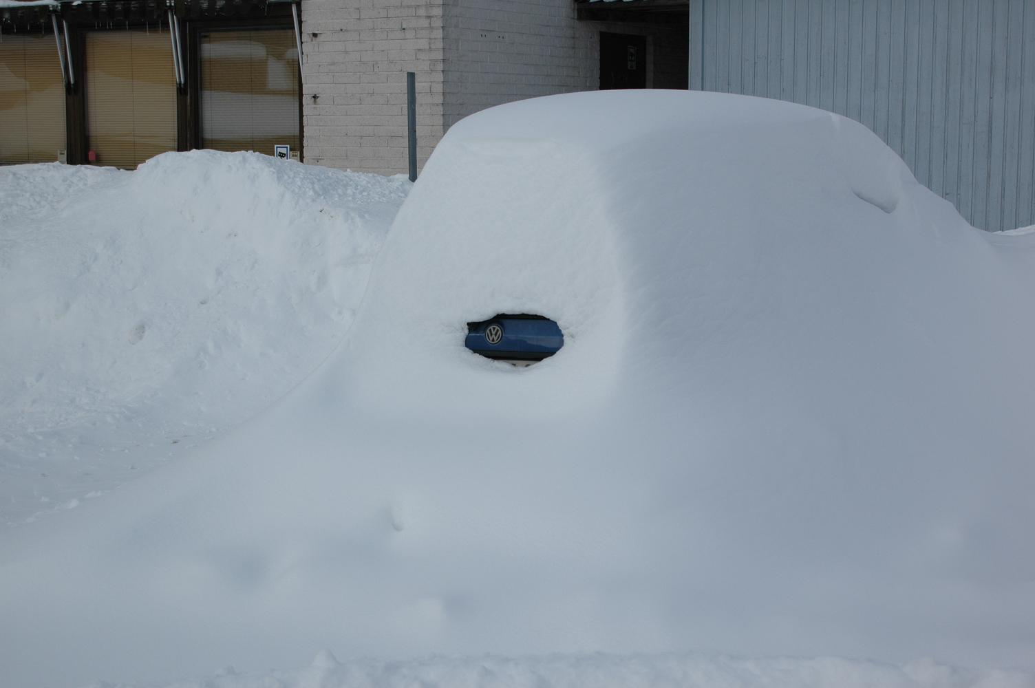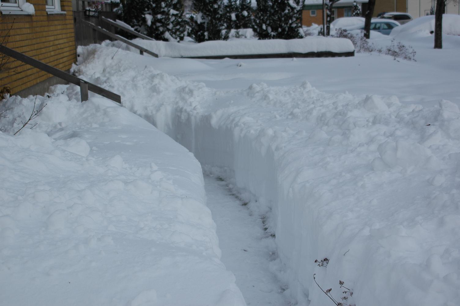 ja det har väl landat på 50-60cm, på andra ställen mer eller mindre och snödrivor på metern. upp plogade''berg'' på 2-3m går nog också att hitta. ja en j***a massa snö, jag blir sne på sne.