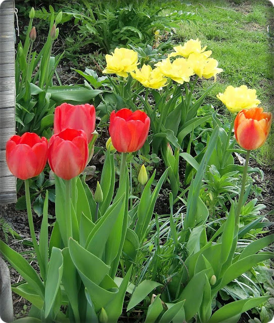 Tulpaner, påskliljor, narcisser och gullvivor. Tulpaner, tulpaner....... Röda och gula tulpaner!Jag är så glad att jag varje år har planterat en massa lökar. Nu får jag verkligen njuta av vårprakten...underbart!!!
