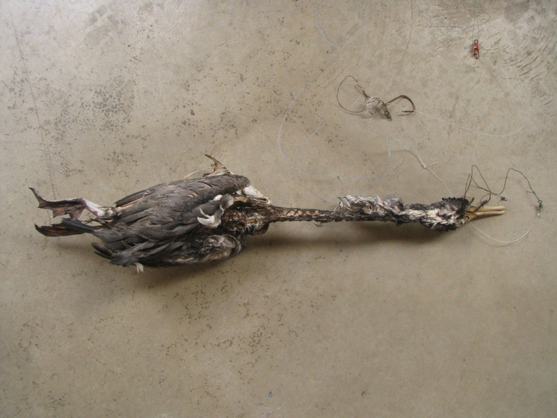 Andra bilden är en skarv jag hittade i februari som hade tuggat i sig en krok med tillhörande lina, som sedan hade fastnat i en buske och lämnat skarven hängande.