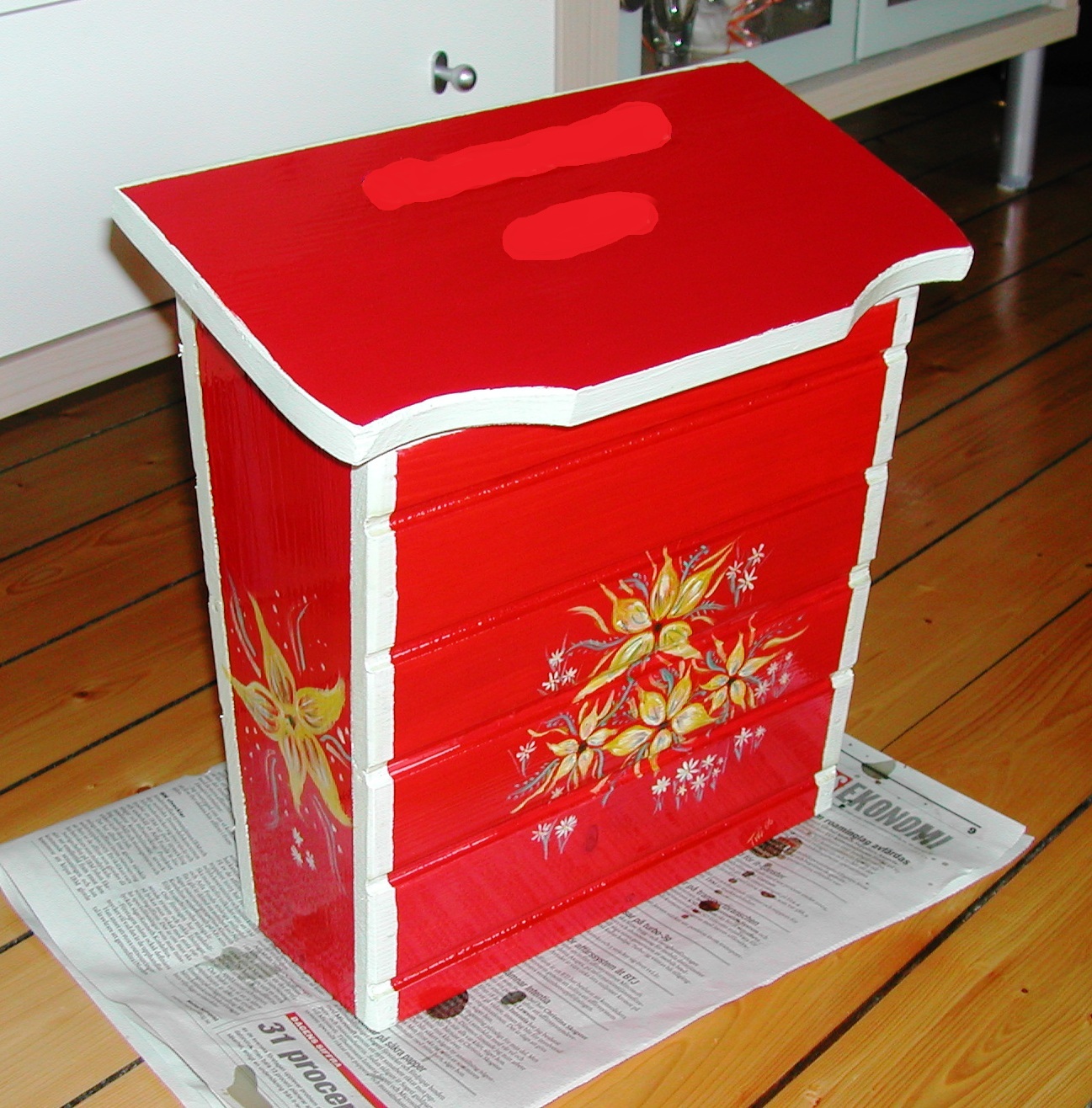 Gills det med att måla brevlådor? Gjorde 2 sådanahära till kompisarna en hem o en till deras land när de fyllde år. Tycker om att måla på trädiskborstar o trärotfruktsborstar annars wink.gif