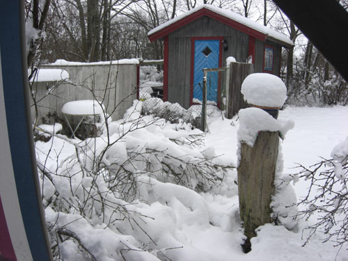 Vår stackars häck har nästan blivit platt så jag måste ut och befria den från snö. Lite synd eftersom det är vackert med snötäcket men jag vill ju gärna ha häcken kvar.