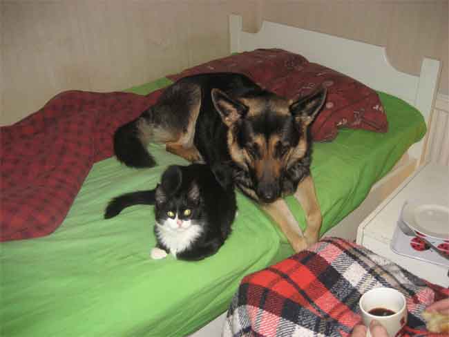 Jag blir så less och känner det som att eftersom sambon är sjuk så har kommunen tagit över och ska sambon få hjälp måste vi andra utplånas, fast bara under den korta stund som han har hjälp – under dygnets övriga tid – 23 timmar och 45 minuter så är det vi som ska sköta allt – både hund och katt hjälper mig mycket. Fortsättningsvis får jag och djuren gömma oss när det kommer någon hit, för självklart är jag minst lika farlig – jag bits ju! Biter ifrån i alla fall