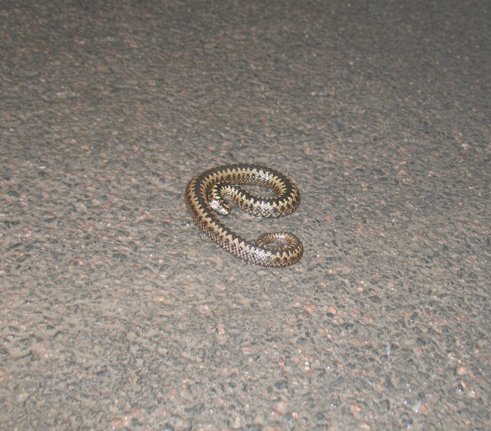 Denna huggorm såg jag idag vid elvatiden, ingen sol bara gråväder.