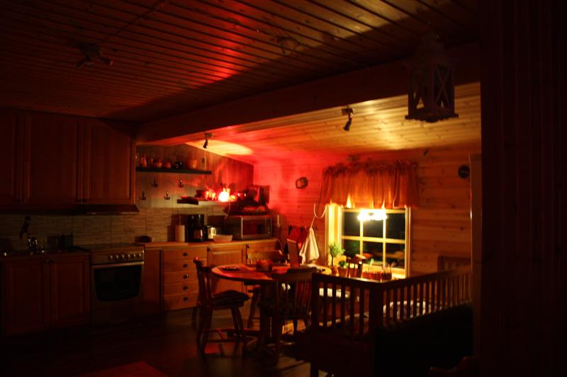 Mysig helg vi hade på stugan. Här köket och vardagsrummet, bilder tagna med och utan blixt.