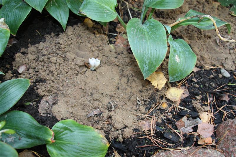 För snart två veckor sedan planterade jag över hundra vårlökar vid stugan. Förra helgen planterade jag lite till. Döm om min förvåning, då jag såg att det redan kommit upp vit Tidlösa. På EN VECKA! Så nog har dom fart på mina växter