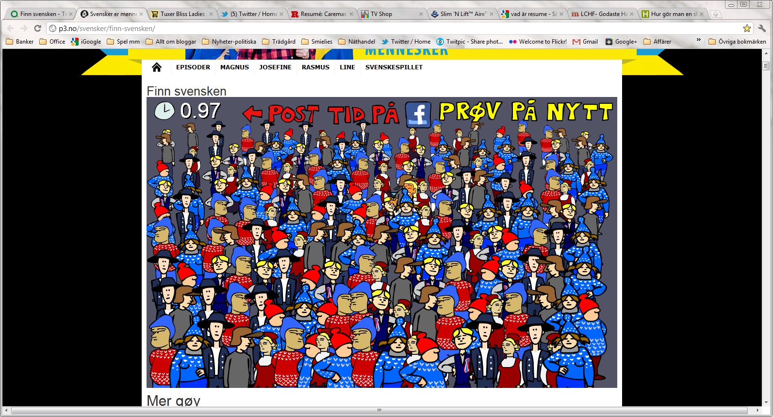 En sak är säker. Det hjälper inte att träna. Ibland ser jag honom inte alls, även om han är tydlig. Men plötsligt på andra försöket i dag hittade jag honom och lyckades klicka snabbt. 0,97. Så nu är jag oxå onaturlig.