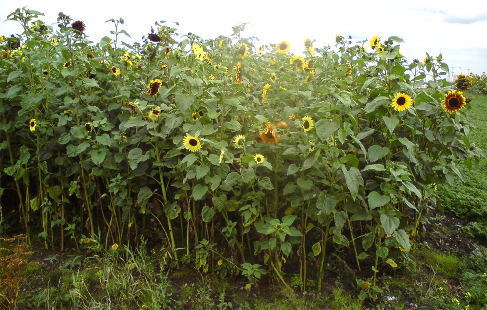 Vid utkanten av Malmö har kommunen sått solrosor i massor,blommar fortfarande även om väder och vind har gjort sitt.