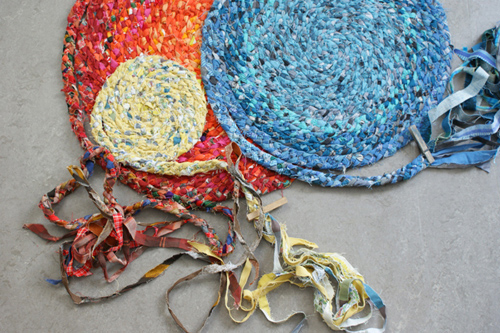 Nu är jag JÄTTEGLAAAAD!!!! Jag hittade nämligen en sida där det visas hur man kan fläta en matta av mattrasor!