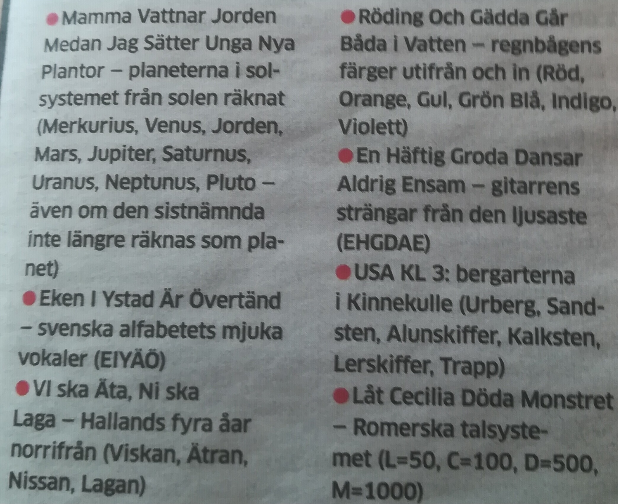 Har ni några bra "minnesregler" eller minnes- ramsor för att komma ihåg saker och ting.