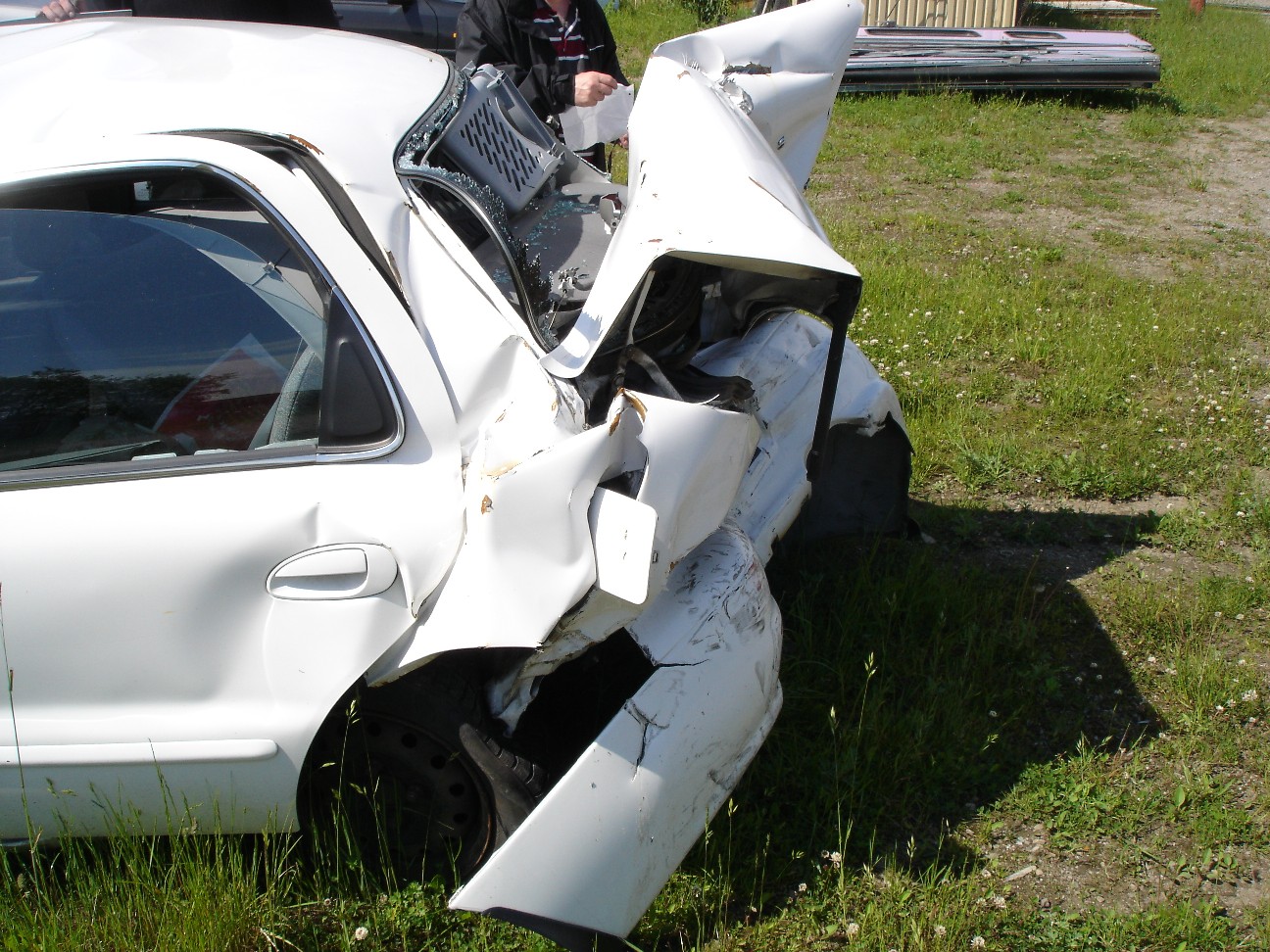 Så här såg hans bil ut efteråt. Det var en ganska stor sedan-modell..