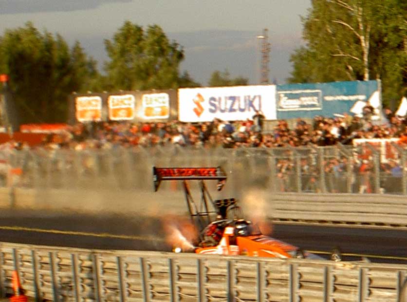Top Fuel bilar i action, notera eldsflammorna ur avgasrören.