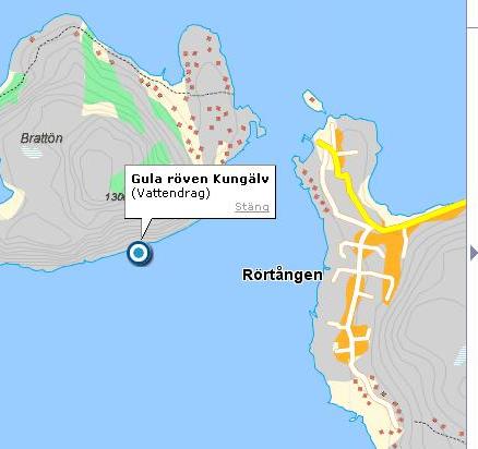 Bohuslän har många roliga namn som färjeläget/ byn Rörtången och utanför Rörtången ligger öarna stora och lilla Trefoten och stora och lilla Brorn. På närbelägna Brattön finns detta märkliga namn?