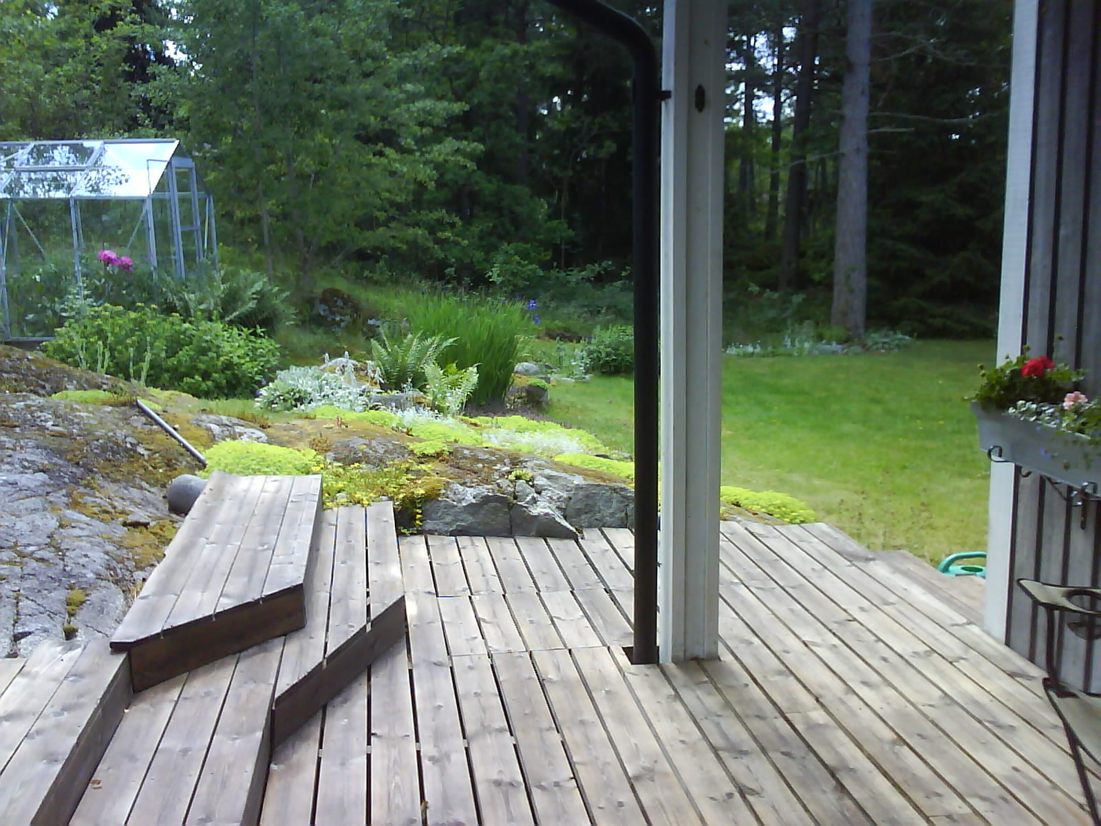 Jag letade och letade men kunde inte hitta nån bild på självaste huset men så här ser det ut utanför köksdörrn...