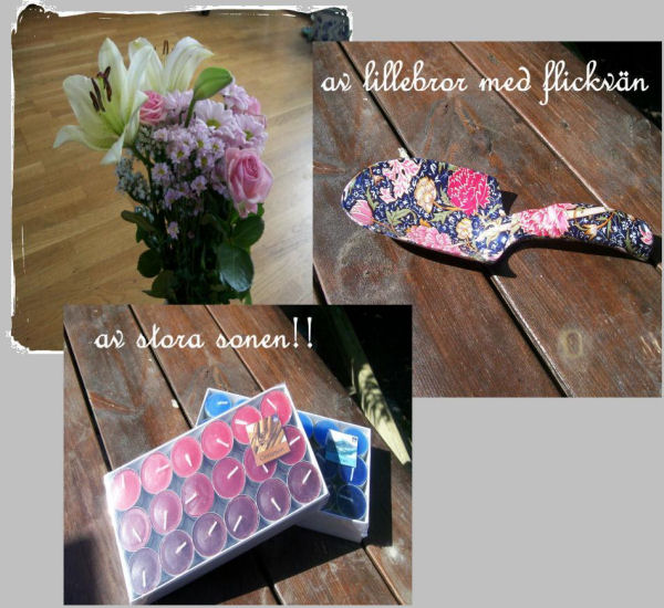måste bara visa!!! en bukett till frukost på sängen och min lillebror hade skickat med min mamma spaden och min äldsta son vet att jag älskar doftljus