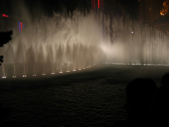 Bellagio hotell och dess fontänshow till musik. Frank Sinatra var det just här på bilden.