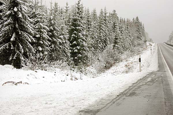 Rudan körde tur och retur Ödeshög idag för att hämta ett skåp med insektslådor. Mellan Borås och Ulricehamn fanns det lite snö här och var och likadant ovanför Gränna men så här såg det ut vid Rv 40 mellan Ulricehamn och Jönköping. Hej mitt vinterland...