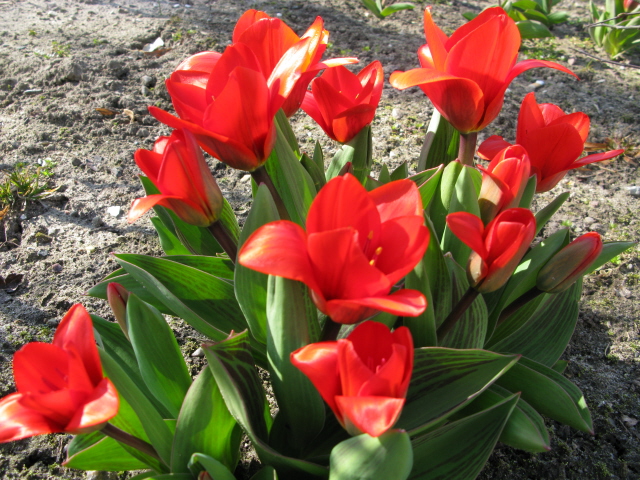 Dagens bild består av nyutslagna tulpaner - i inte i särskilt skyddat läge - tror att det är "Rödluva"....